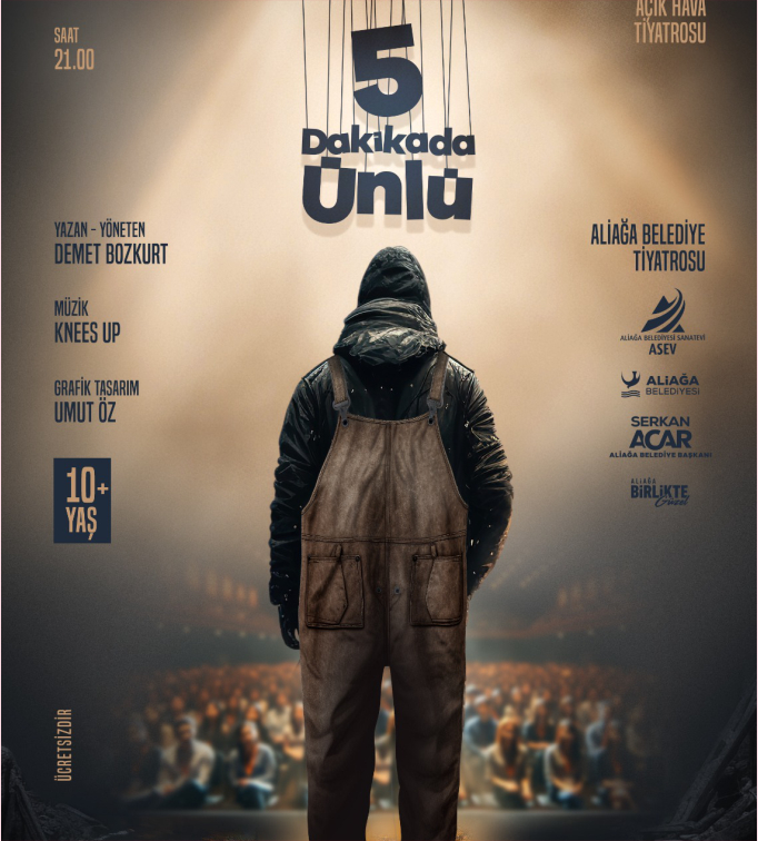 Yazarlığını ve yönetmenliğini Aliağa Belediye Tiyatrosu Sanat Yönetmeni Demet Bozkurt’un üstlendiği ‘5 Dakikada Ünlü’, Aliağa’da perde diyor.