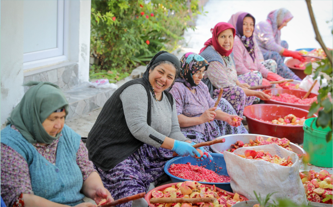 Mahalle sakinleri birçok aşaması olan nar ekşisi yapımının zahmetli bir süreç olduğunu dile getiriyor.