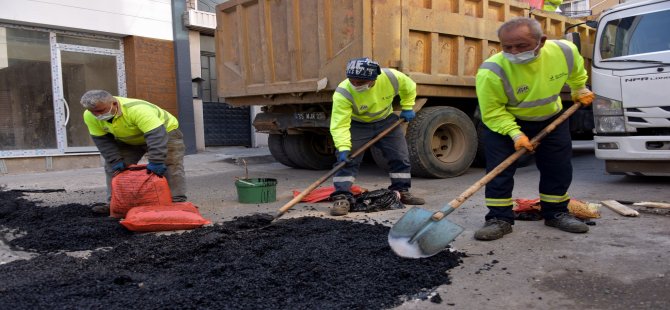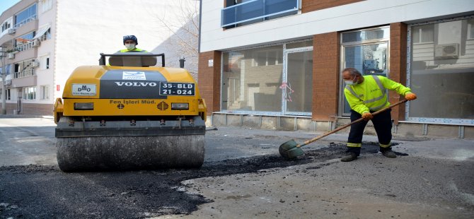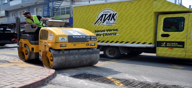 Aliağa Belediyesi Fen İşleri Müdürlüğü bünyesinde görev yapan ATAK Ekibi, hafta sonu sokağa çıkma kısıtlamasını fırsat bilerek kent merkezinde bozulan, bu nedenle de hem yaya hem de araç trafiği için tehlike arz eden yollarda yama asfalt çalışması gerçekleştirdi.