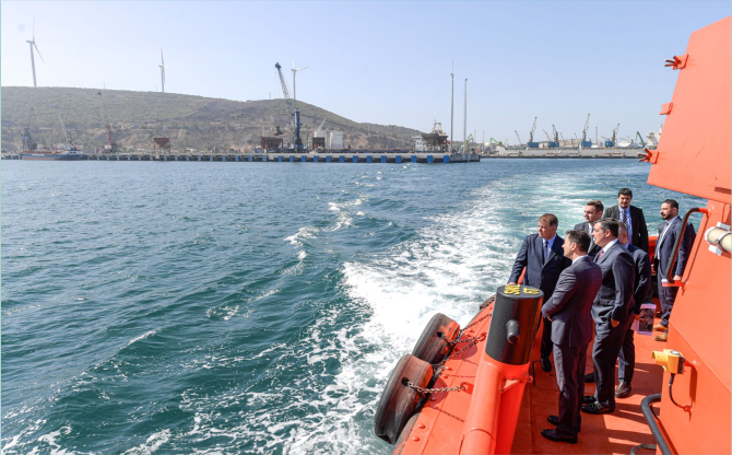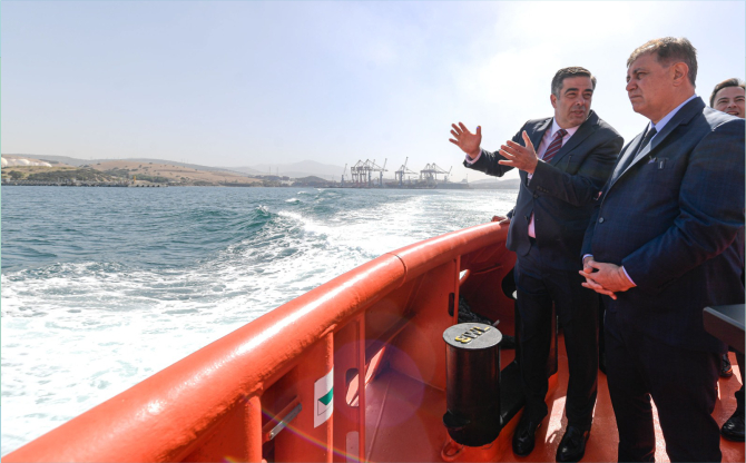 İzmir Büyükşehir Belediye Başkanı Dr. Cemil Tugay, ekonomik ve jeostratejik potansiyeli ile Ege Bölgesi için büyük önem taşıyan Aliağa limanlar bölgesinde incelemelerde bulundu. Türkiye’nin toplam ihracatının yüzde 8,5’inin gerçekleştiği Aliağa’da Başkan Tugay’a Nemport Liman İşletmeleri Yönetim Kurulu Başkanı Cem Heris, Nemport Liman İşletmeleri Genel Müdürü Hakan Turunç ve yönetim kurullarının üyeleri ile İzmir Büyükşehir Belediyesi Genel Sekreter Yardımcısı Çağatay Güç de eşlik etti.