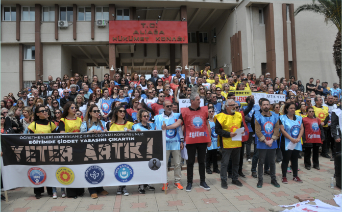 Aliağa'dada konu ile ilgili olarak Hükümet konağı önünde basın açıklaması yapıldı. Basın açıklamasından önce hayatlarını kaybeden tüm eğitimciler ve İbrahim Oktugan için saygı duruşunda bulunuldu.
