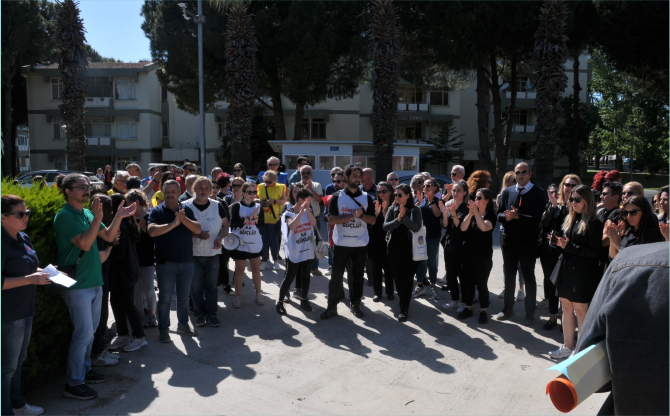 Rabia Atbaş konuşmasında şunları ifade etti: "TED Aliağa Koleji Vakıf Yönetimi, öğretmenlerimizin taleplerini bildirmek için istediğimiz randevuları defalarca reddetti. Öğretmenlerimiz yaşadıkları stres ve sıkıntılar sonucunda hasta olmuş, doktorlar tarafından verilen bir günlük raporlar bile Vakıf Yönetim Kurulu Başkanı Deniz Komsuoğlu tarafından sorgulandı. Öğretmenlerimiz, tekrar hastaneye gitmek zorunda bırakıldı."