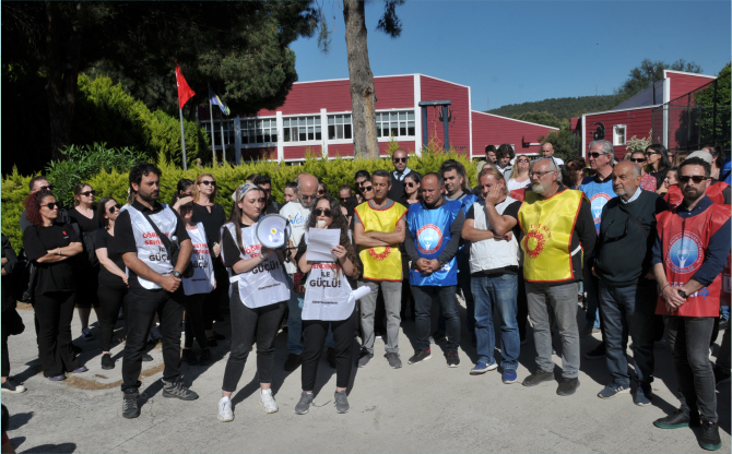 TED İzmir Aliağa Koleji'nde bir öğretmenin, hastalığı nedeniyle almış olduğu rapor sonrası işten çıkarılması eğitim camiasında ve veliler arasında büyük tepki topladı. Maaş endişesiyle farklı sağlık sorunları yaşayan 22 öğretmenden biri olan öğretmenin işten çıkarılması, Özel Sektör Öğretmenleri Sendikası İzmir Şubesi tarafından düzenlenen basın açıklamasıyla kınandı. Açıklamaya, öğrenci velileri ile birlikte Eğitim-İş, Eğitim-Sen ve Veli-Der gibi eğitim ve veli derneklerinden de destek geldi.