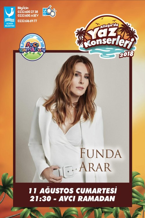 Sevilen aşk şarkılarının başarılı yorumcusu Funda Arar, Aliağa Belediyesi’nin “Yaz Konserleri” kapsamında sahne alacak.