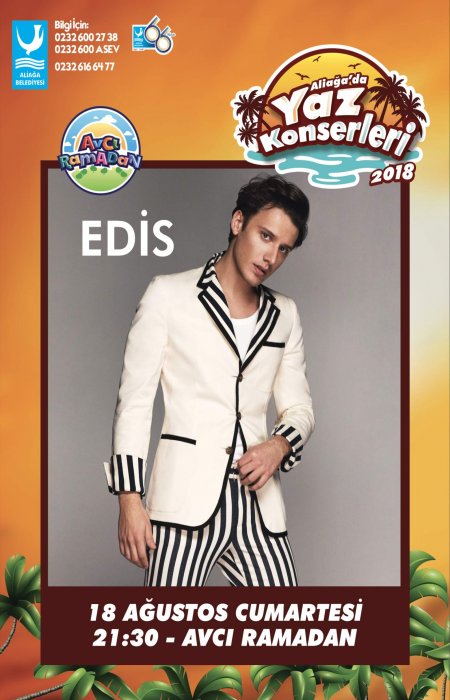 Şarkıları ile kısa sürede milyonların kalbinde taht kuran yeni neslin tartışmasız en çok konuşulan ismi Edis, Aliağa Belediyesi’nin ‘Yaz Konserleri’nde sahne alacak. 18 Ağustos Cumartesi günü maviyle yeşilin buluştuğu 72 dönümlük Avcı Ramadan Çocuk Oyun ve Rekreasyon Alanı’nda gerçekleştirilecek olan konser saat 21.30’da başlayacak.